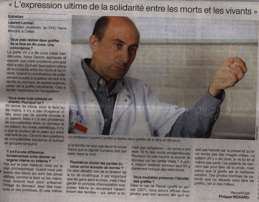 +entretien avec Laurent Lantiéri, chirurgien plasticien et professeur qui a réalisé la greffe. |