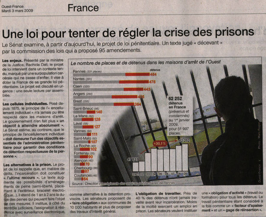 [Justice] Une loi pour tenter de régler la crise des prisons- Ouest France du 03/03/09 |